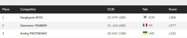 도쿄올림픽 결과를 포함했던 '7월 11일 기준' 월드랭킹은 평균 1천404점의 탬베리가 1위, 1천376점의 우상혁이 2위였다.